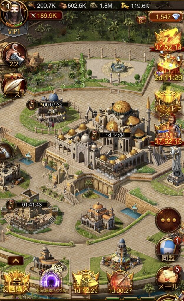 神殿レベルを上げるために王城レベル上げ、王城レベルを上げるために各施設のレベルを上げていくような流れで進めました。